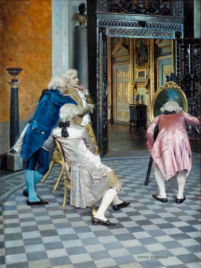 Jyväskylän avoimen opiskelijoiden kirjoittajayhteisöön kuuluminen herätti ymmärtämään, että kirjoittajuuteni pahin este, näkymätön vihollinen olen minä itse. Siksikö todella kirjoitan, että kukaan ei saisi lukea ajatuksiani tai syventyä luomiini fiktioihin. Pelkkä uutuus tai yllättävät näkökulmat eivät tee tekstistäni luovaa, vaan kirjoittajana kehittymiseen tarvitsen ulkomaailmaa, lukijoita. Serlachiuksen taidemuseossa huomasin, miten Gunnar Berndtsonin maalaus ”Taiteentuntijoita Louvressa” kuvittaa pahimmat pelkoni. Miten voisin koskaan läpäistä armottoman seulan ja lunastaa paikkani kirjoitetun jatkumossa.